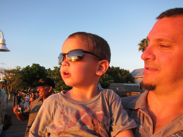 The funny story of the evening was after we left Sloppy Joes. If you don't know anything about Key West, Duval Street is kinda like Bourbon St. in New Orleans...lots of bars and exciting nightlife. We were walking back to our car, and I was holding LL's hand and Mr.E was on the inside. All of a sudden a visibly drunk lady came dancing out of a bar singing loudly. I stop and stop LL, so she doesn't do anything like fall into him ;) Instead she proceeds to flash us and the neighboring bar patrons. EEEKKKK my 3yr old's vision!!!! He really didn't get it. But the funny thing was that since I stopped to hold LL back since I knew she was going to do something crazy, I blocked Mr.E's view of it...hahahahahaa! He was a little pouty he missed the exhibition ;)